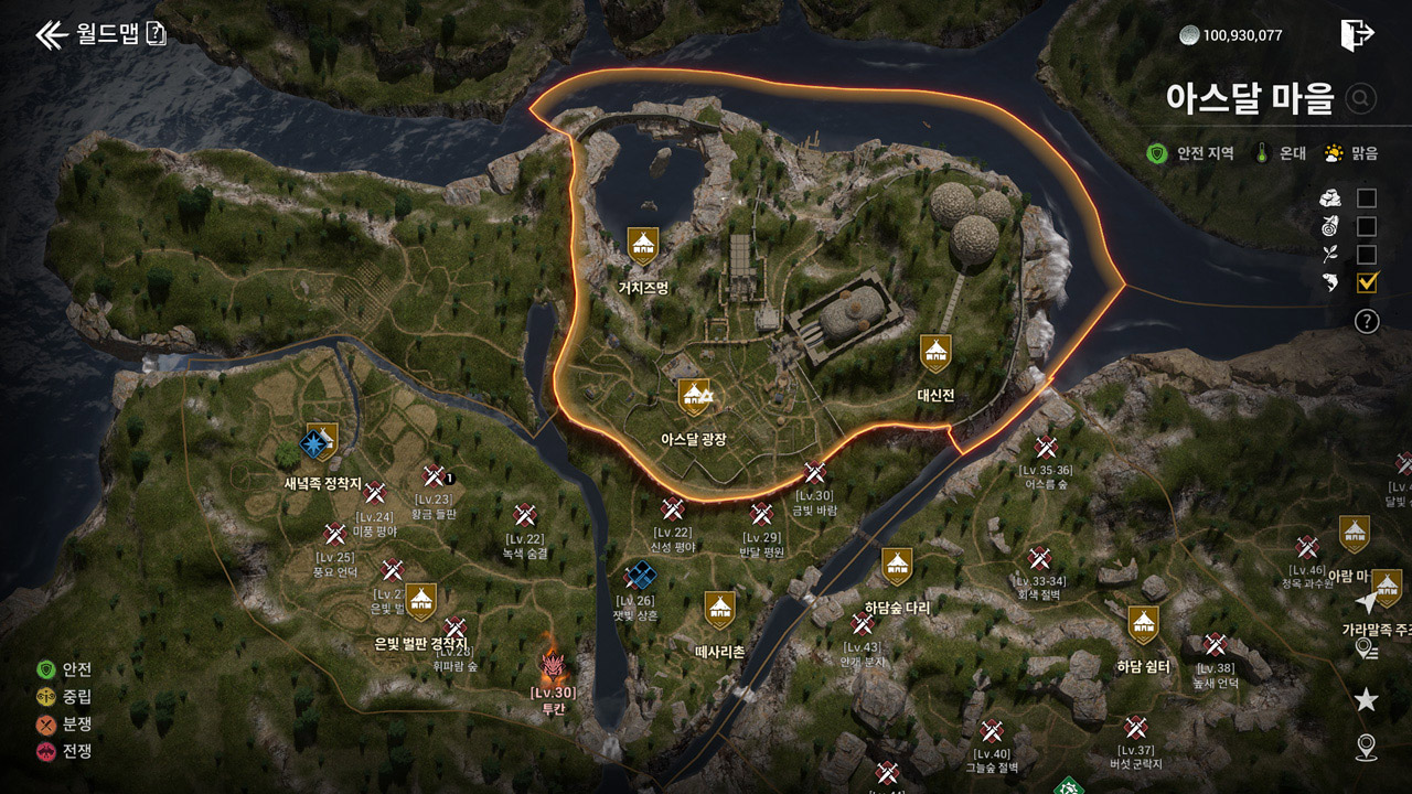마치 펠월드를 연상케하는 지역의 온도 및 환경에 따른