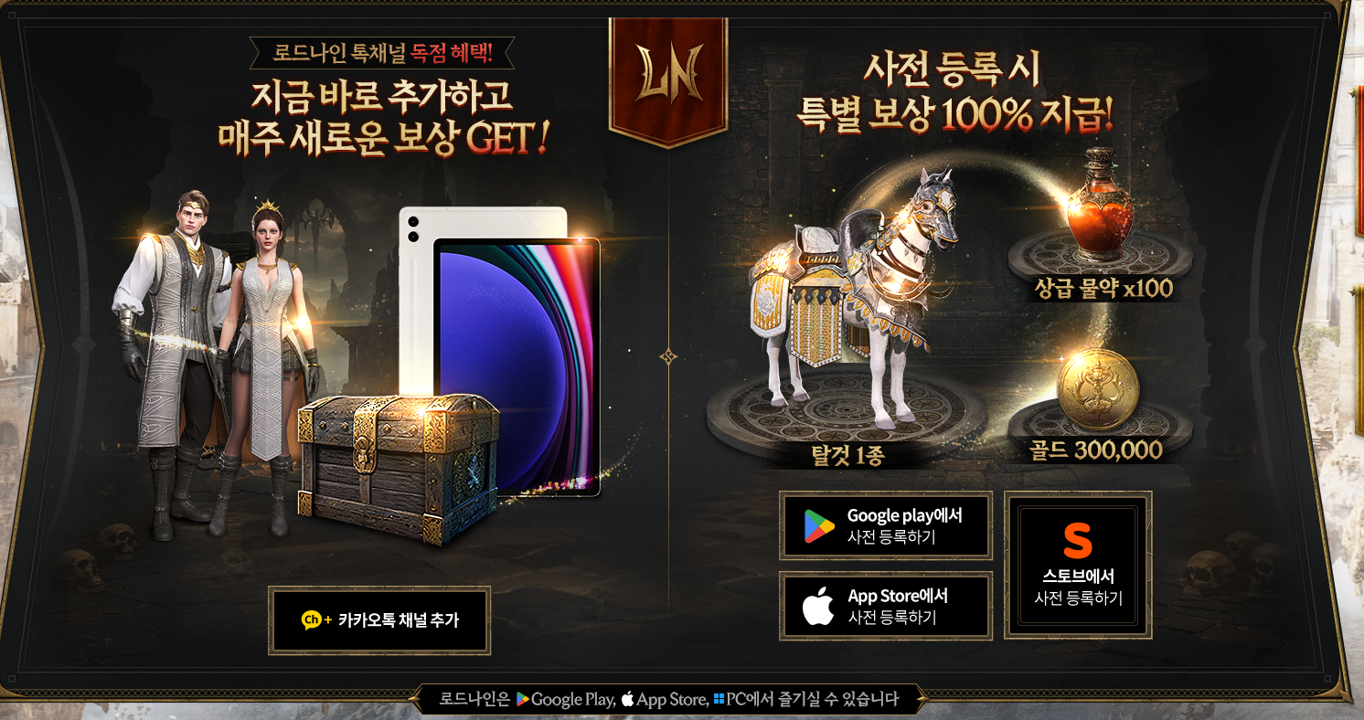 탈것 1종과 상급 물약 100개, 30만 골드를